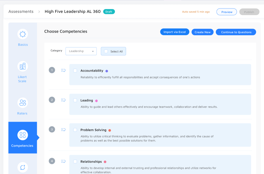 The Career Ready platform allows coaches to customize each and every aspect of an assessment, starting from the Likert scale to the number and types of questions, giving coaches full control to modify assessments according to the organization’s goals and values.