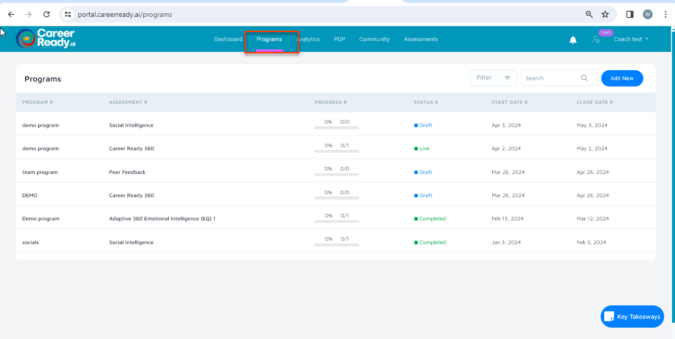 To cancel an assessment invite, go to the program tab and select the program for which you want to