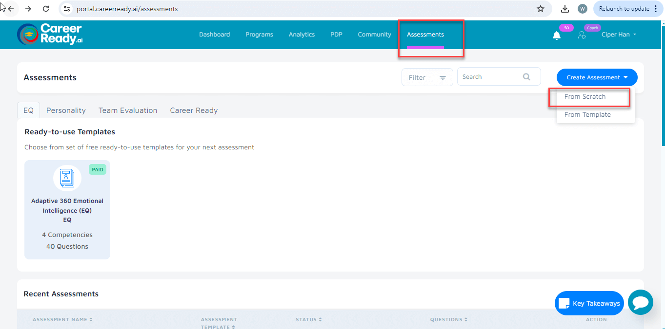 Go to the assessment section to create a new assessment for your program. You can use the ready-to-use template for your assessment or can create your own assessment from scratch.
