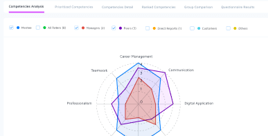 5 diverse rater types (manager, peer, direct report, customer, faculty) along with the feature to select any that you created.