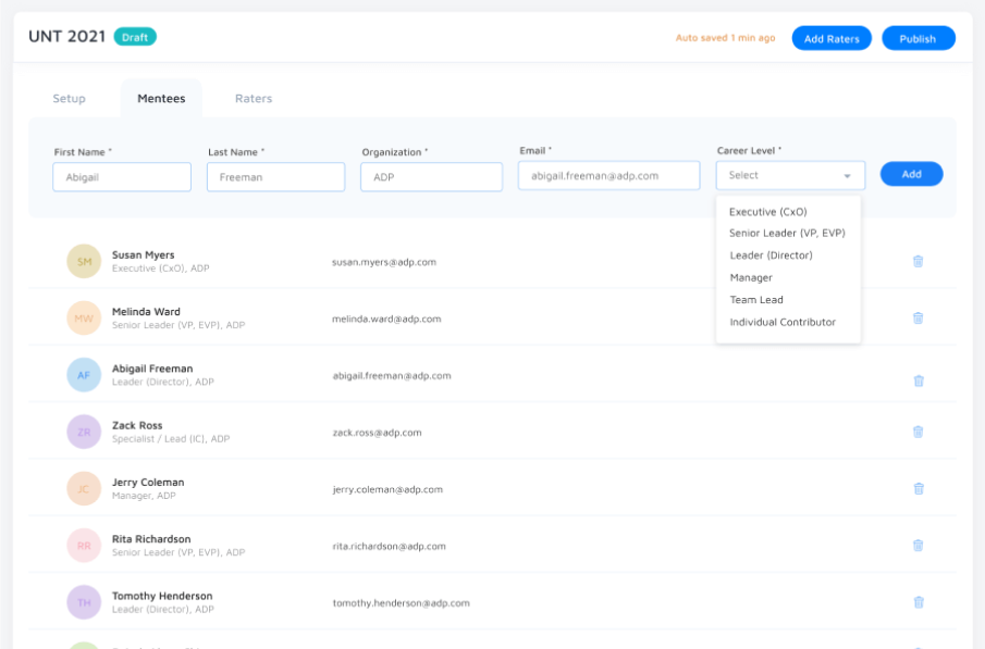 Rater & Mentee Management